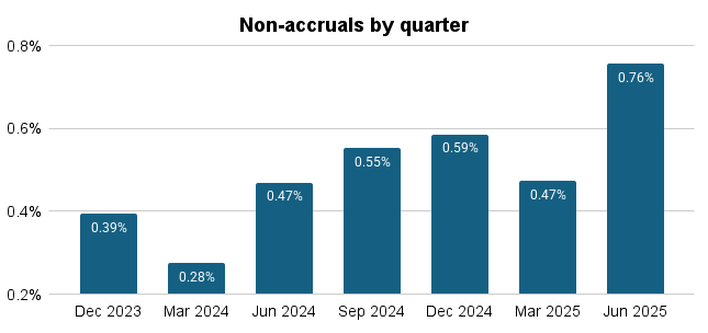 In Q2 2025, when looking at industry-wide data, the share of loans on non-accrual status ticked up to 0.76%, compared with 0.47% a year ago.
