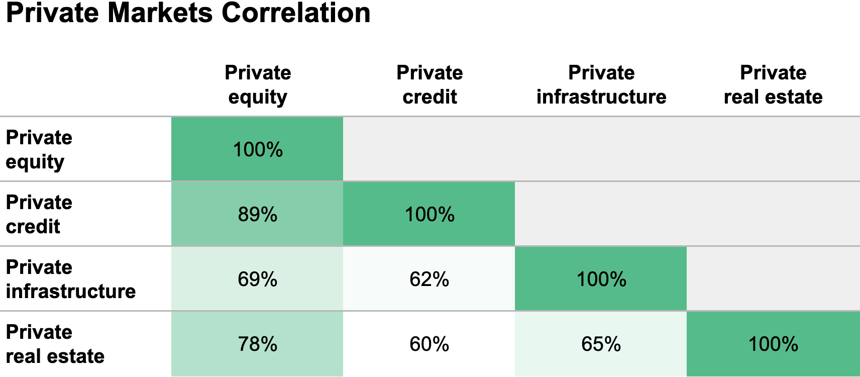 And when we compare private market asset classes, we see that some are less correlated than others when it comes to returns.